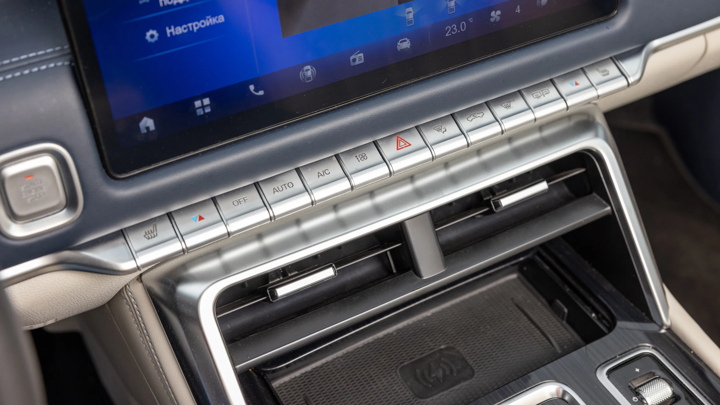 Отдельный зачёт — за полностью механический блок климат-контроля и удобные шайбы, отвечающие за ездовые режимы и работу полноприводной трансмиссии. Минус — за урезанный зимний пакет: в TUNLAND V7 есть только подогрев передних сидений и ветрового стекла.