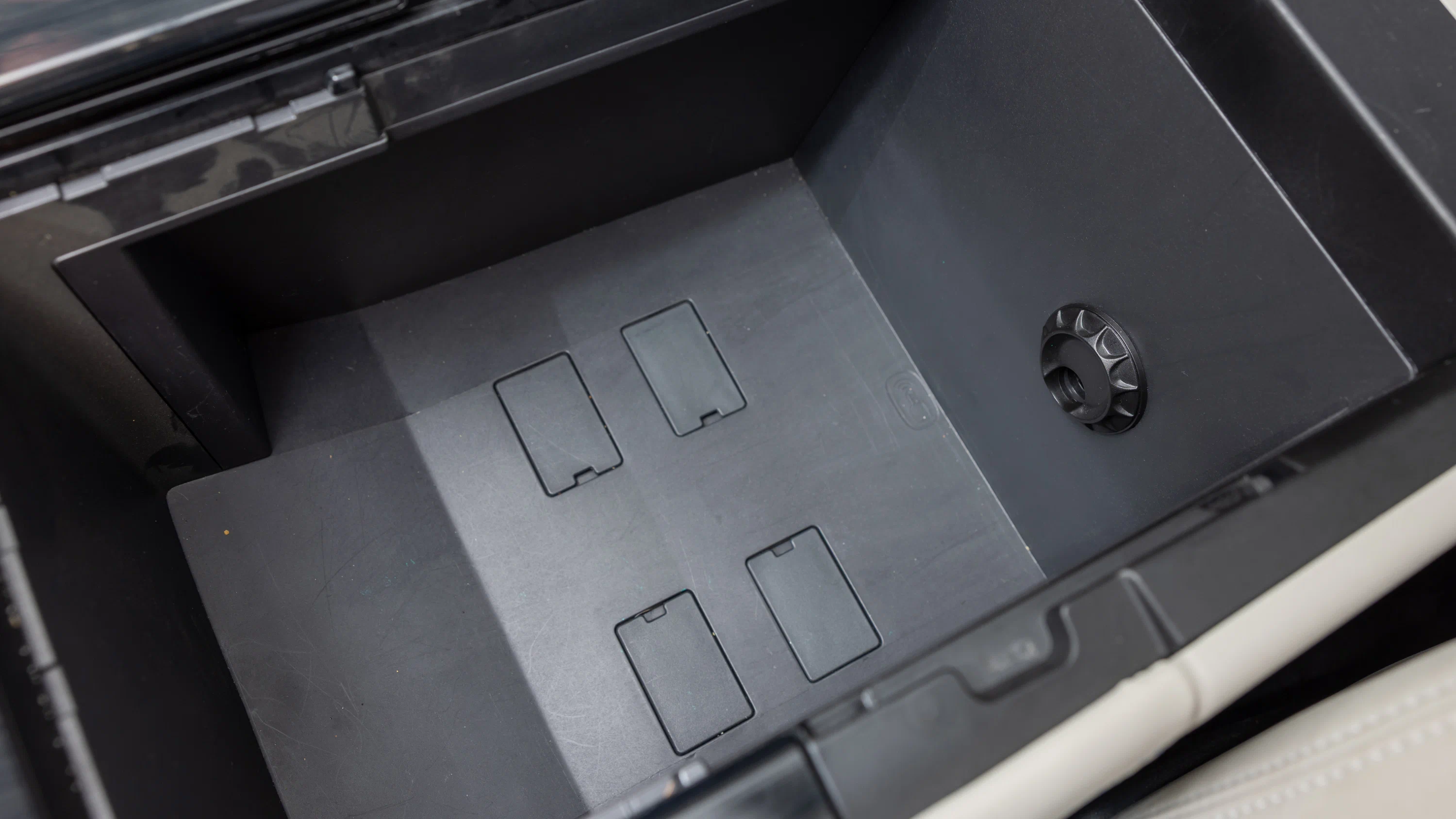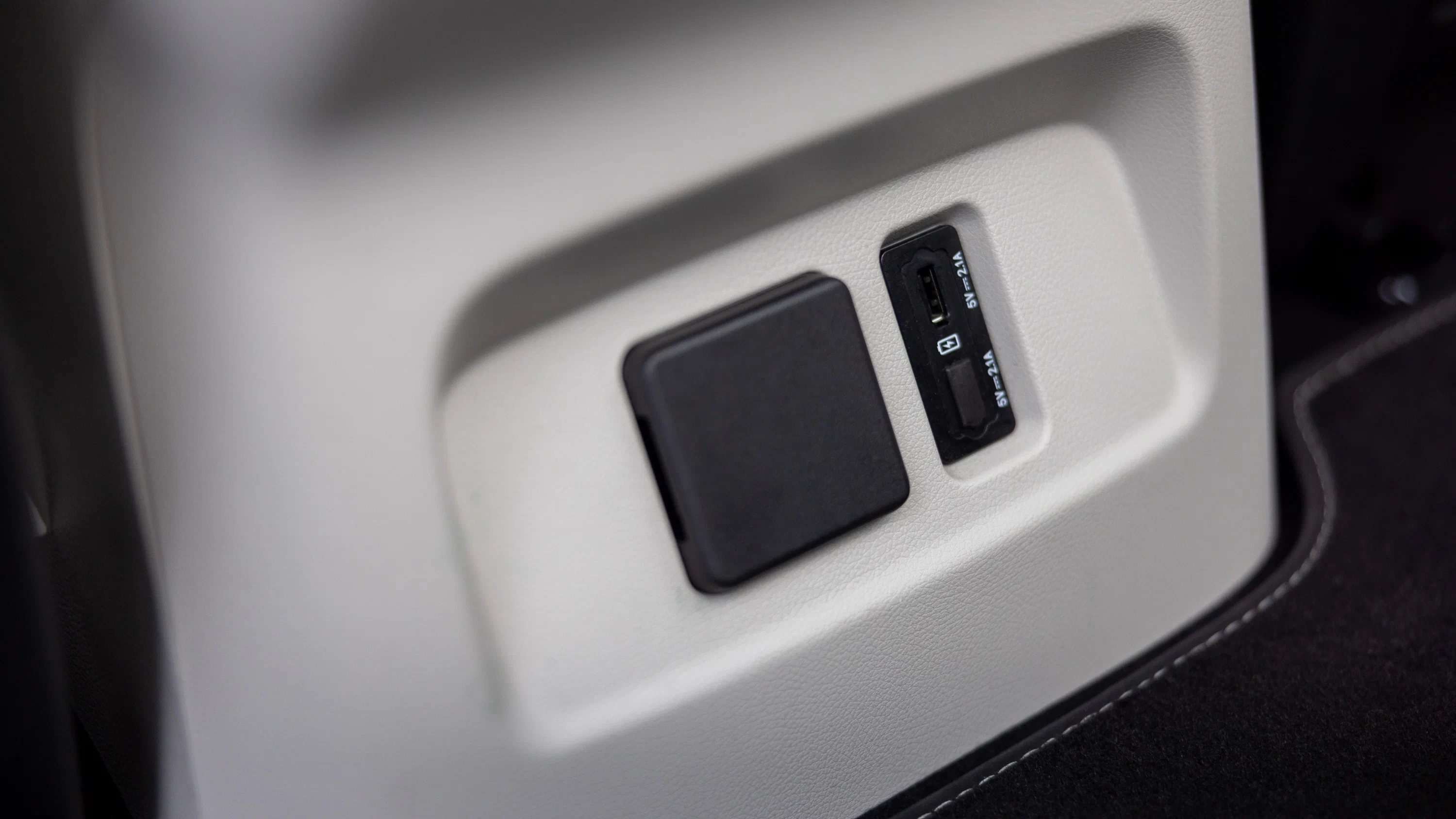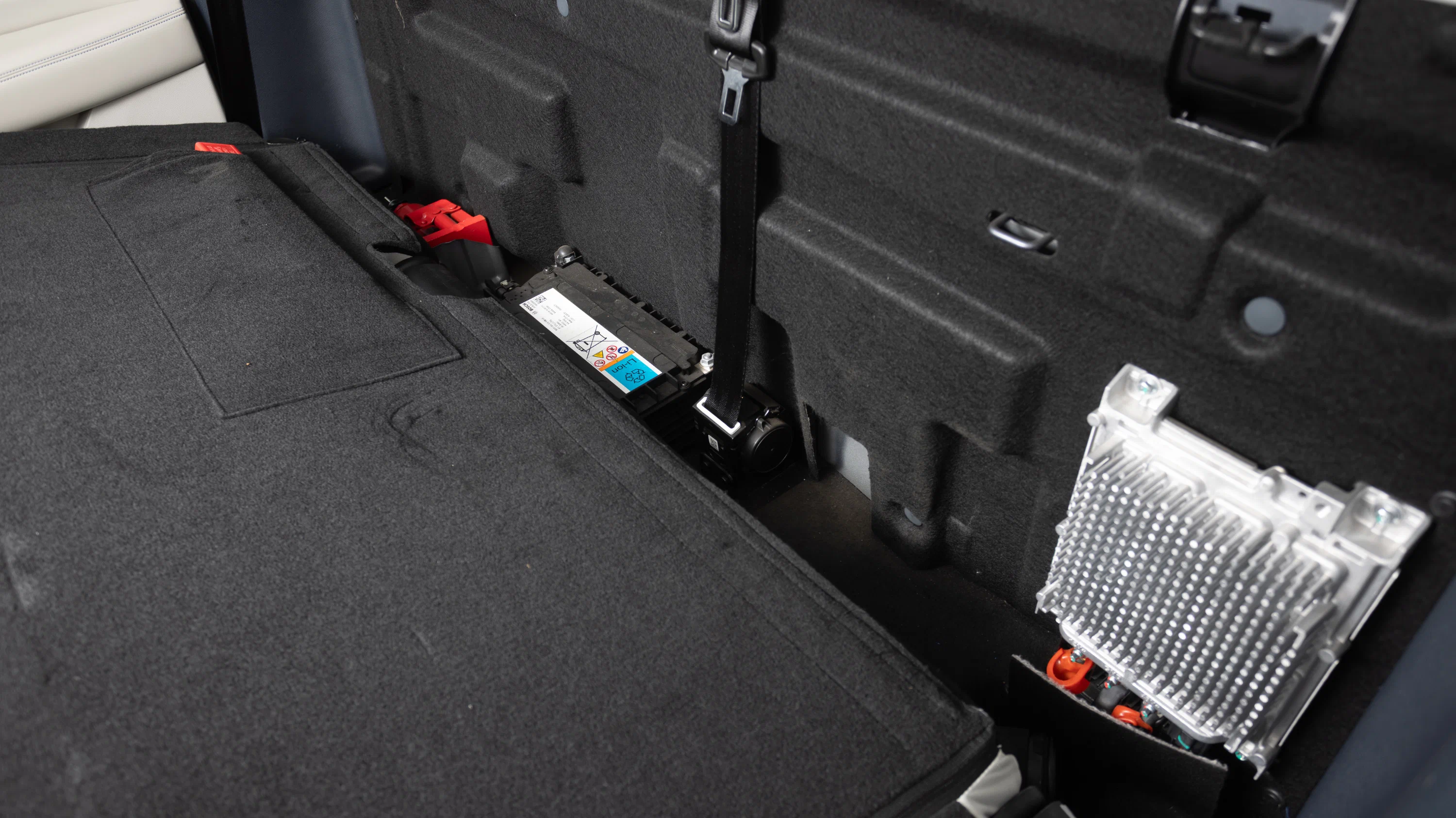 Для более удобной посадки диван отрегулировать нельзя, но зато он трансформируется для перевозки небольших грузов: разделённая в пропорции 60:40 подушка поднимается, спинка складывается — правда, только целиком. Но места за ней почти нет — там установлены блоки управления и 48-вольтовый аккумулятор.