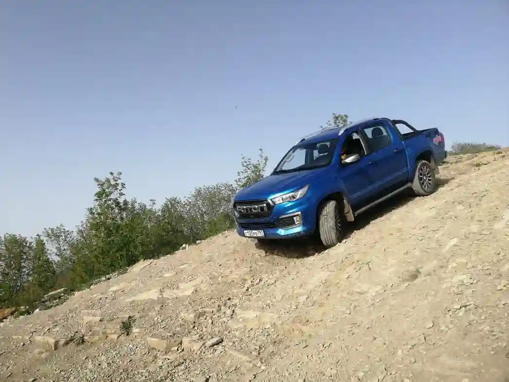 Но внедорожные способности TUNLAND G7 компенсируют все эргономические просчеты его создателей. Кажется, что нет такого препятствия, которое не смог бы преодолеть пикап от FOTON. На пониженной передаче и полном приводе автомобиль буквально на холостом ходу вскарабкивается в такой подъем, взбираться в который и на своих двоих страшно.