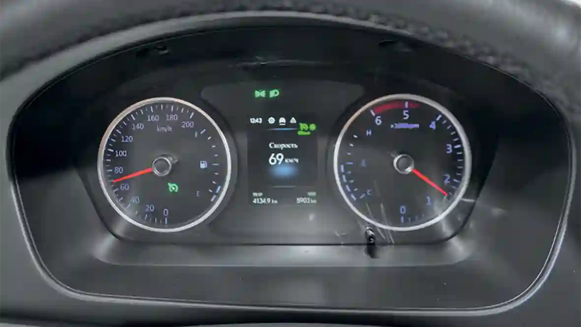Каким бы грузоподъемным ни был фургон, не менее важным является то, как обустроено место водителя. Шкалы спидометра и тахометра — аналоговые. Между ними имеется небольшой дисплей, на нем отображается текущее значение скорости, расход топлива, предупреждение о низком давлении в шинах. Есть предложение добавить информацию о температуре наружного воздуха.