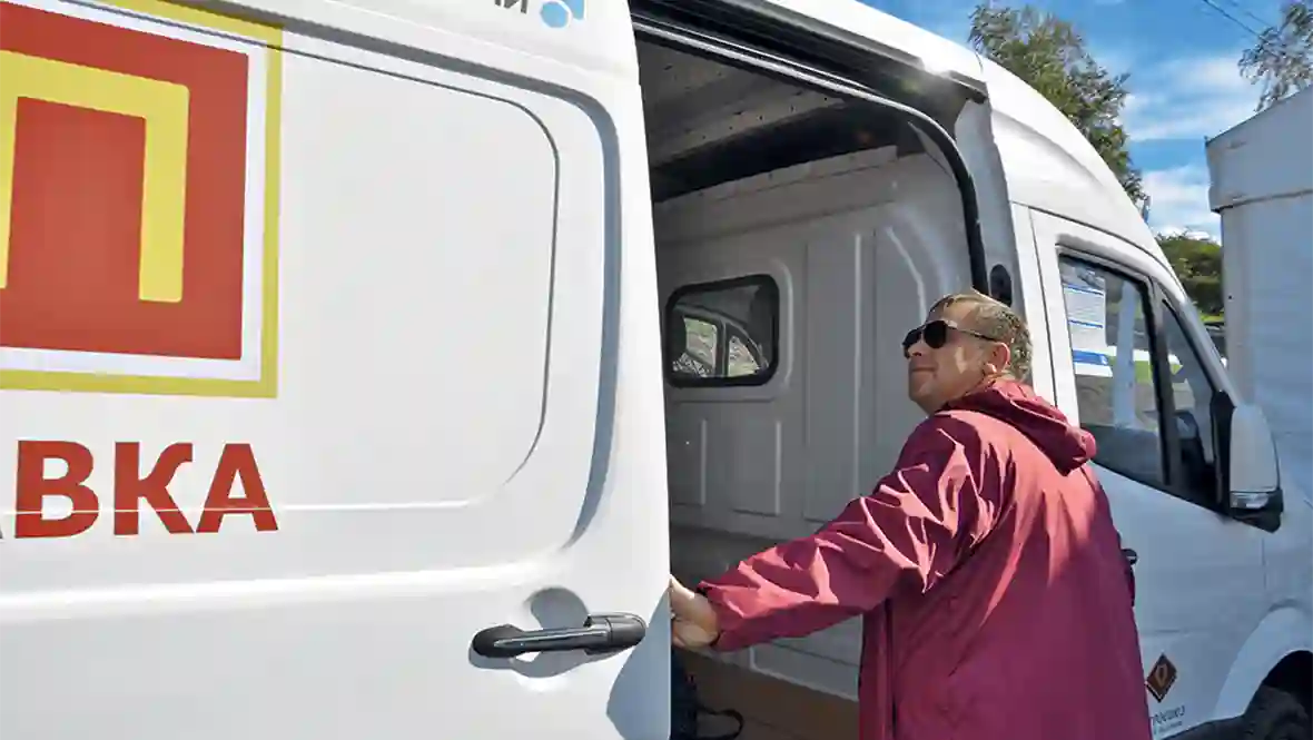На ярмарке первыми с машиной знакомиться подошли двое курсантов Арктического морского института им. В. И. Воронина. Грузовые возможности машины их мало интересовали, они обратили внимание на характеристики силового агрегата. А вот кооператоры — народ запасливый, потому расспрашивали больше о грузовых возможностях фургона. Посмотрев на заднюю рессорную подвеску и выслушав информацию о грузоподъемности, один из коллег заявил: «Да тут почти полторы тонны можно увезти»! Честно предупредили, что по этому вопросу лучше поинтересоваться у дилера. Другой товарищ, оглядывая грузовой отсек, присвистнул от восторга и стал что-то с жаром рассказывать собеседнику по телефону. Беседа велась не на русском языке, судя по бейджу, это представитель Чувашского потребсоюза. Предположу, что вместимость фургона была оценена в превосходной степени. За время работы ярмарки понял, что кооператоры из центральных областей о модели наслышаны. Меньше других с машиной были знакомы их поморские коллеги. Это неудивительно: малотоннажный транспорт архангельских кооператоров представлен в основном отечественными автомобилями. Наконец, подошла пара местных молодоженов. «А вы только кооператорам показываете фургон, или всем желающим?» — спросила девушка. Выяснилось, что молодые ищут машину для открытия своего дела. С удовольствием и им показали наш экспонат: от салона до грузового отсека.