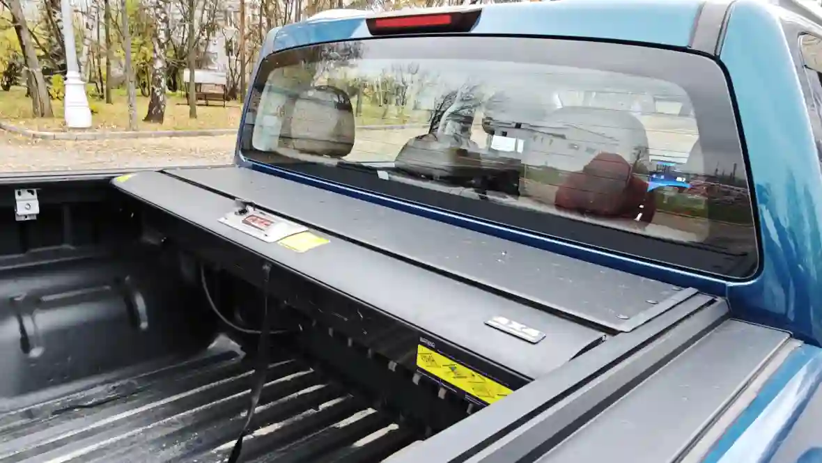 На рассматриваемый V7 установлена механическая роллета. Тут каждый сам оценивает необходимость подобной модернизации, кому-то, возможно, практичнее будет кунг или вовсе тент. Но на наш взгляд, самое практичное – многосекционная крышка. Она надёжно защищает пространство кузова от осадков, легко устанавливается и демонтируется и надёжно крепится.