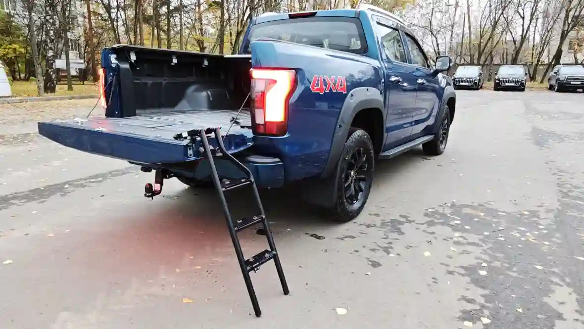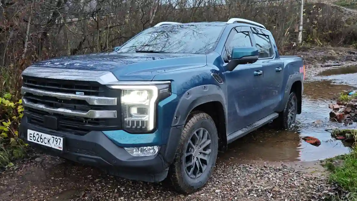 Клиренс 210 мм (по задним амортизаторам), углы въезда/съезда 28°/26°, глубина брода 700 мм, жёстко подключаемый 4WD BorgWarner, понижайка 2,48:1 и 100 % блокировка заднего дифференциала Eaton. Добавьте к этому 18-дюймовые AT-шины и специальные внедорожные режимы, которые реально меняют характер машины, — и получаете пикап, который уверенно ползёт по грязи, песку и камням, вытаскивает себя лебёдкой (если поставите) и спокойно тянет прицеп до 750 кг без тормозной системы по грунтовке. Он не заменит подготовленный Defender или Hilux с лифтом, но для охоты, рыбалки, стройки и обычного «заехать куда все боятся» — более чем достаточно. Главное — загрузить кузов хотя бы 200–300 кг, иначе жёсткие рессоры будут подпрыгивать на пустой машине.