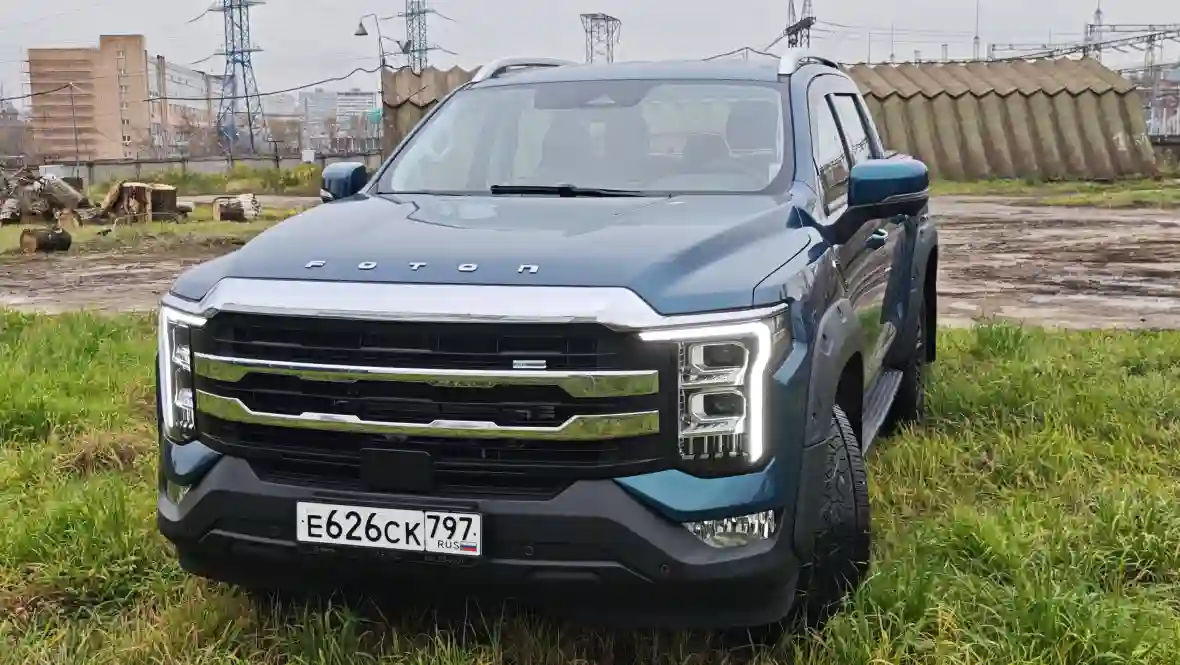 FOTON TUNLAND V7 — это один из самых «взрослых» китайских пикапов на сегодняшний день. Он выглядит современно и дорого: массивная вертикальная решётка, раздельные LED-фары, мускулистые арки и общая стилистика «бюджетного F-150» делают его заметно свежее и солиднее большинства одноклассников.