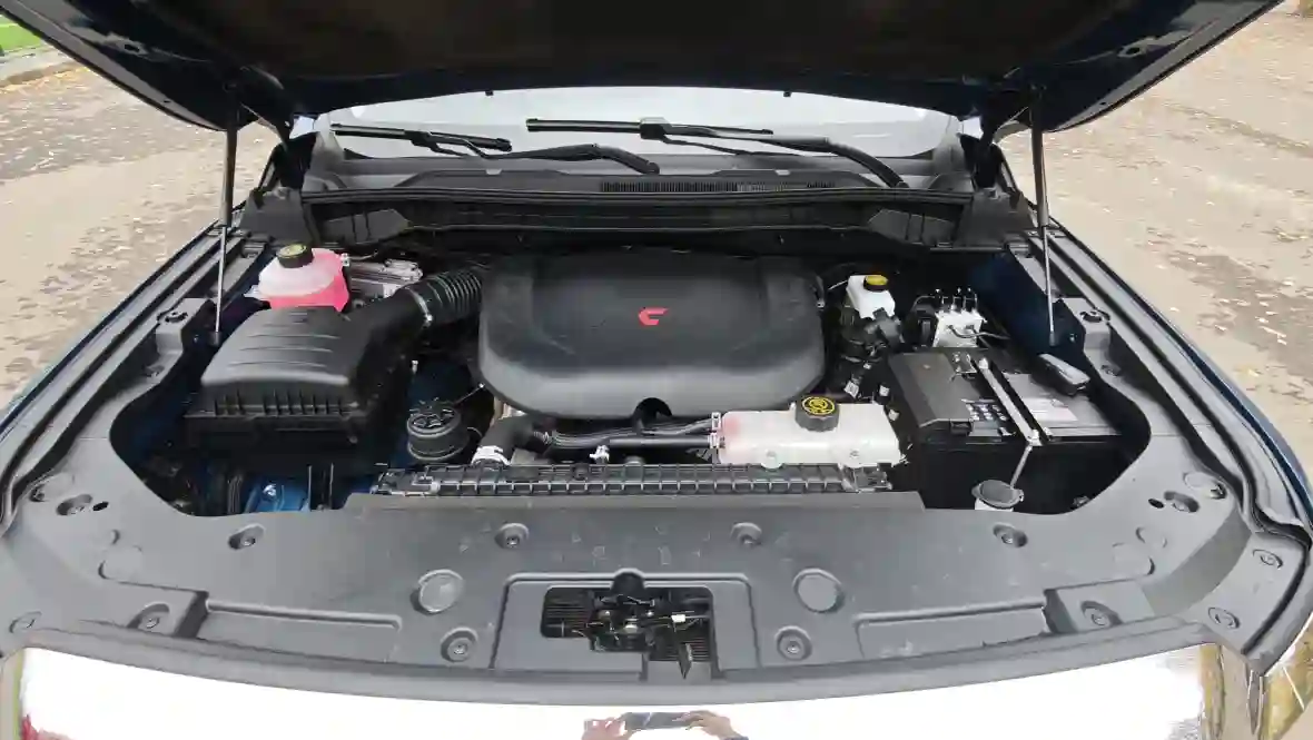 Под капотом сразу бросается в глаза наклейка Aucan — это бренд двигателей и силовых агрегатов, созданный FOTON в партнёрстве с Cummins (совместное предприятие Beijing FOTON Cummins Engine Co., Ltd., или BFCEC, с 2006 года).