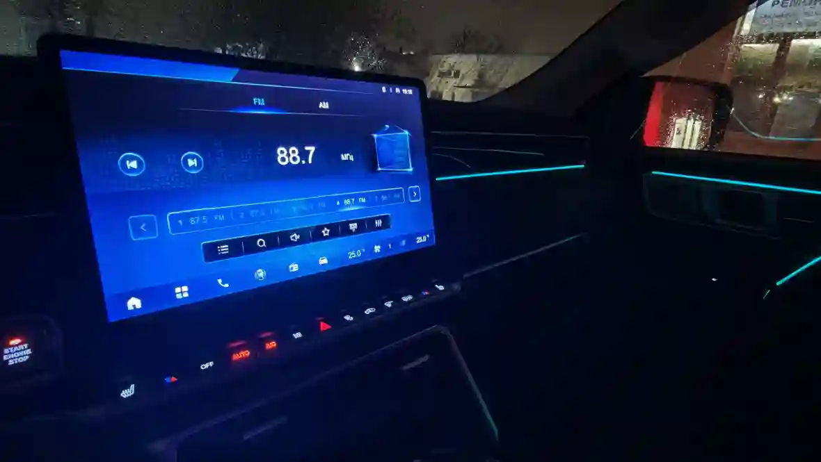 «Ничего лишнего, всё по делу». В TUNLAND V7 стоит горизонтальный 14,6-дюймовый планшет с неплохим разрешением 1920×1080. Китайцы здесь не стали изобретать велосипед и сделали одну из самых понятных и «не тормозящих» систем в сегменте китайских пикапов. Главное впечатление — простота и скорость. Никаких вложенных меню на пять уровней, никаких «умных» ассистентов, которые пытаются угадать твои мысли.