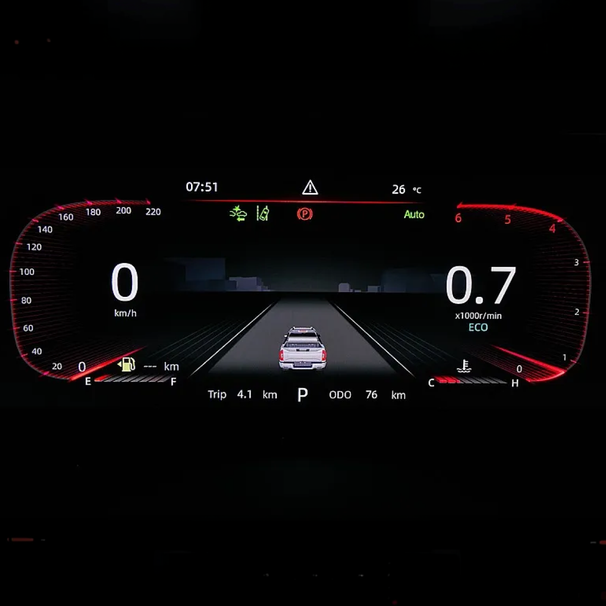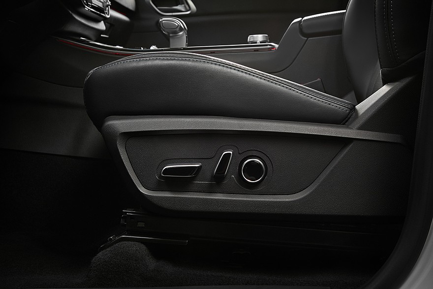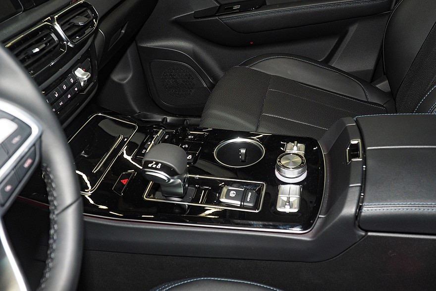 Салон TUNLAND G9 можно смело назвать мечтой традиционалиста-кнопочника: практически все значимые функции, включая климат и режимы работы раздаточной коробки, имеют отдельные физические органы управления. Отличий от G7 тут очень много: изменились материалы, больше стало дорогого мягкого пластика. Кресла водителя и переднего пассажира получили не только электрорегулировку поясничного подпора, но и систему вентиляции. На панели перед передним пассажиром – декоративная подсветка в нескольких вариантах. Классическую комбинацию с аналоговыми приборами и расположенным между ними дисплеем бортового компьютера сменил 12-дюймовый экран с несколькими вариантами вывода на него всей необходимой информации. В частности, есть версия и с «нарисованными» циферблатами спидометра и тахометра. Тачскрин головной медиасистемы реализован не в виде отдельно торчащего планшета, а объединен общим козырьком с приборным экраном.