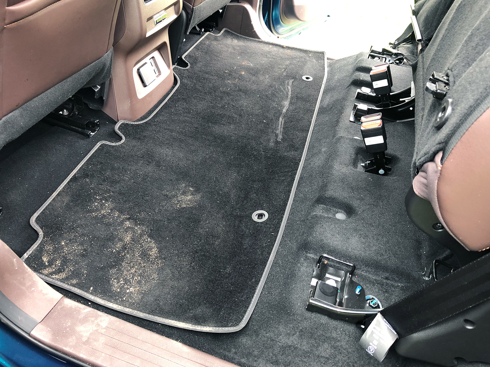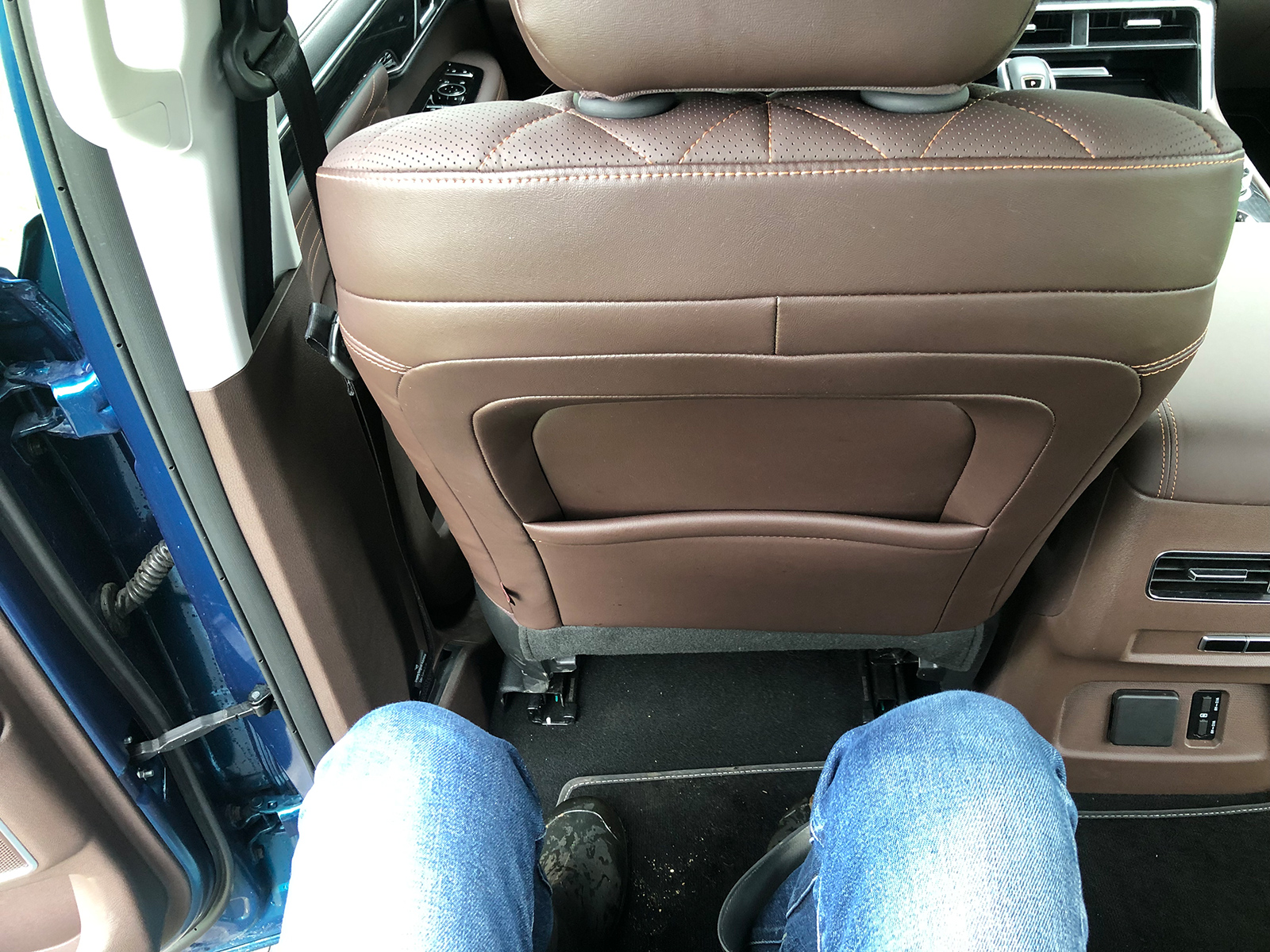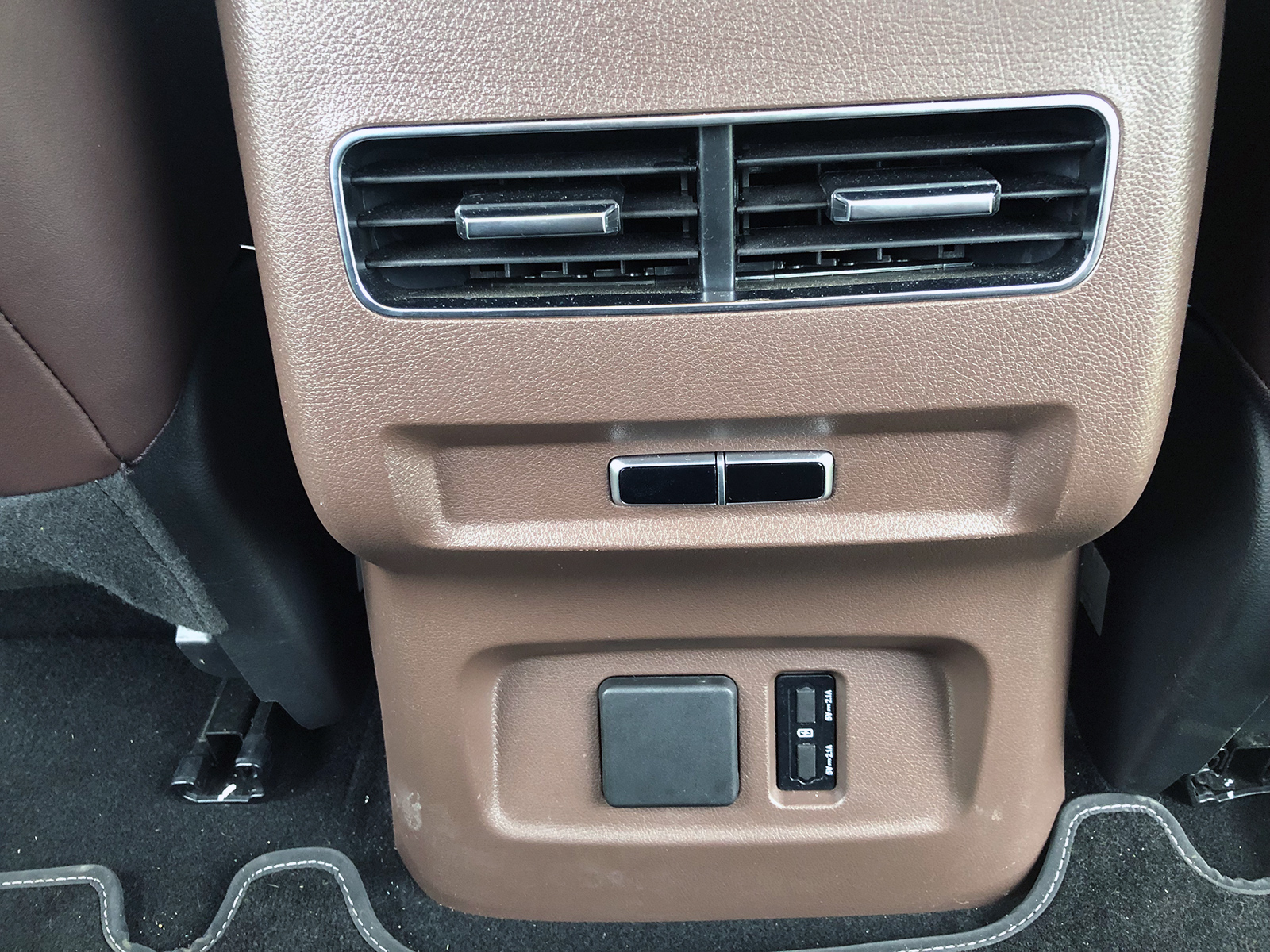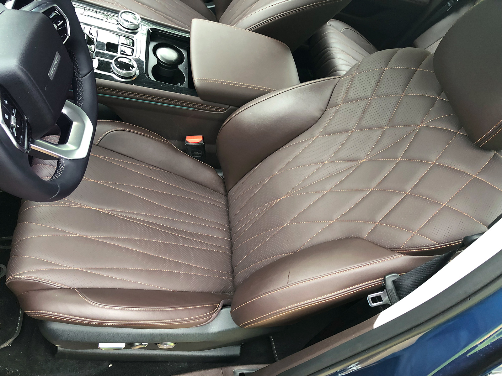 Но забираешься в салон, в чем помогают мощные подножки и рукоятки на каждой из четырех стоек, – и находишь комфорт статусного внедорожника. Автомобиль по-американски просторный. Мягкий коричневый кожзам широких сидений с ромбовидной прострочкой, подогревом и вентиляцией. Два современных дисплея – приборной панели и экрана мультимедиа, оба с отличной четкой картинкой, графикой и шрифтами, похожие на те, что используются в Mercedes-Benz. Есть поддержка Apple CarPlay, панель беспроводной зарядки телефона. Отделка широкой центральной консоли под лакированное темное дерево, алюминиевые вставки. В нише под консолью – USB-разъем и – редкость по нынешним временам – прикуриватель в розетке 12V, которому соответствует вставная герметичная пепельница в одном из подстаканников. Задний ряд сидений – с широким плоским диваном и плоским полом, так что удобно сидеть втроем. Подогревы заднего ряда – опция, как и панорамная крыша.