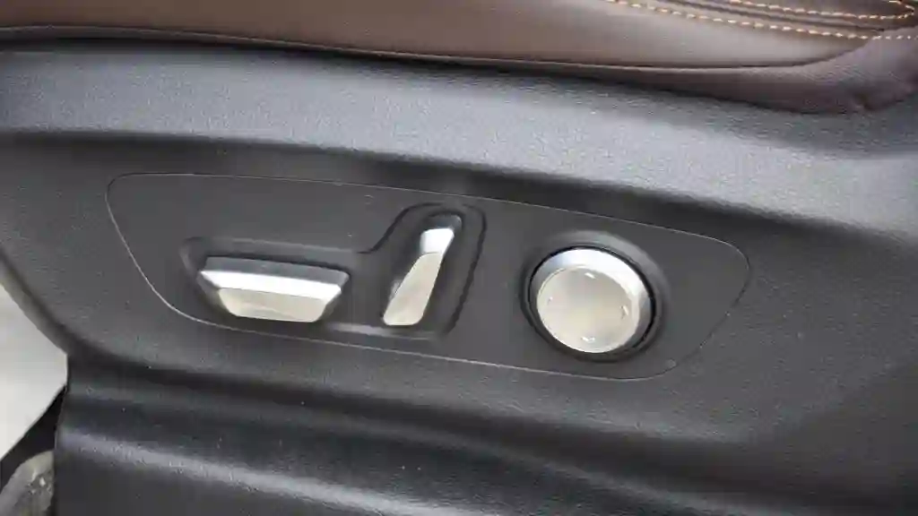 Прежде чем сесть за руль, надо осмотреться. Какой пикап без кожаного салона? В TUNLAND V7 он тоже есть, правда сделан из экокожи, но выглядит дорого-богато. Водительское сиденье регулируется в десяти положениях, плюс есть электрорегулировка поясничного упора.
