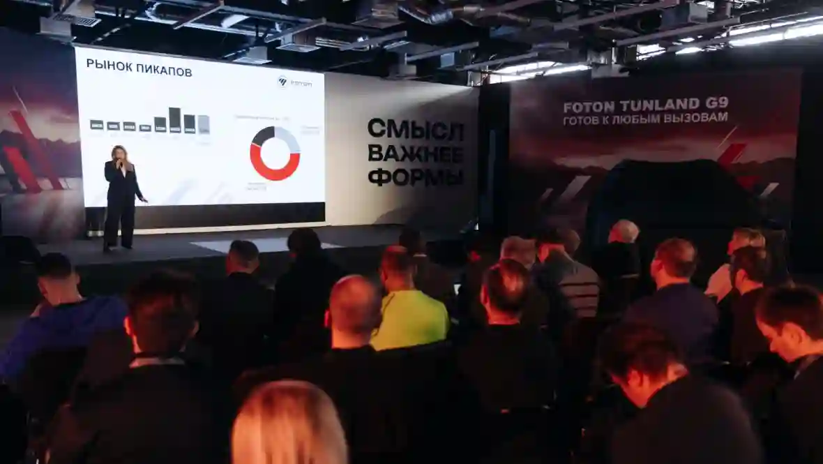 До того, как с новой модели сняли покрывало, на сцену вышла Наталья Королева, заместитель генерального директора АО «МБ РУС». Она рассказала, что по их прогнозу продажи автомобилей в России в 2026 году должны остаться на уровне прошлого года, а по оптимистичному сценарию – вырасти на 10%. Говоря о рынке пикапов, топ-менеджер привела такие цифры: 22010 штук было продано в 2025 году, 22300 штук – прогноз на 2026 год. При этом китайские бренды составляют 57% от рынка, локальные – 24%, автомобили, завозимые по параллельному импорту – 19%.