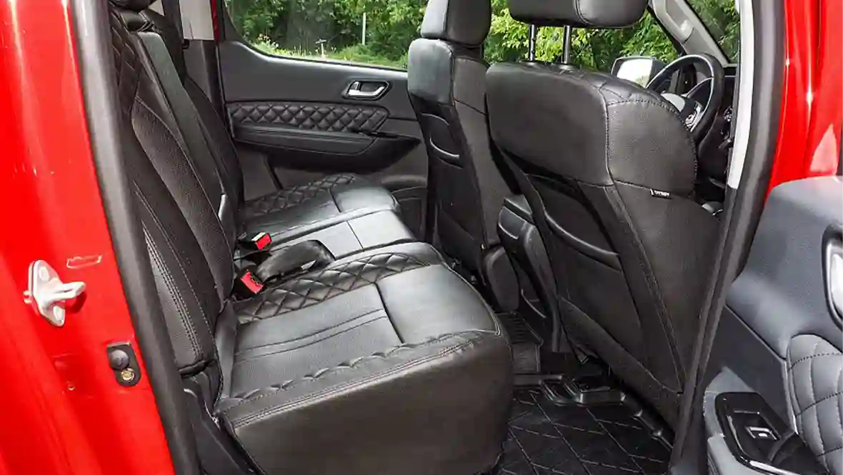 На втором ряду дела обстоят несколько более грустно. Я попробовал сесть «сам за собой» и уперся коленями в спинку переднего сидения. Что поделать: такая проблема есть практически у всех среднеразмерных пикапов, у которых задняя стенка кабины расположена вертикально, перед арками задних колес.