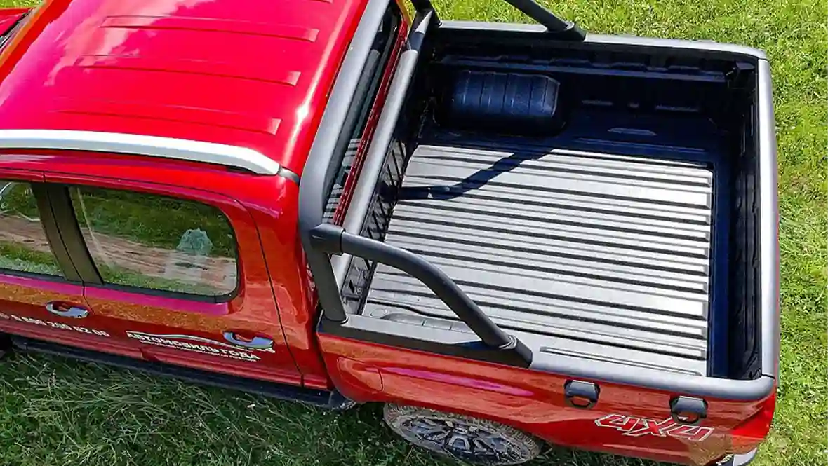 Штатно пикап комплектуется только дугой безопасности, которая визуально удлиняет силуэт кабины, и рейлингами на крышу. Последнее особенно удобно, если пикап планируется использовать для дальних путешествий: жесткий бокс на крыше будет исключительно полезен.