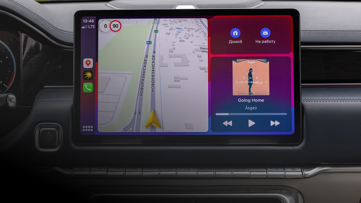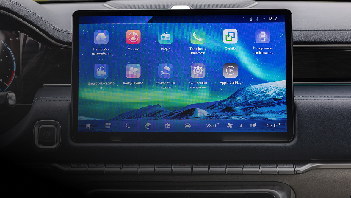 Даже для того, чтобы включить подогрев сидений и ветрового стекла, не придётся лезть в экран — всё на обычных кнопках. Правда, других «тёплых опций» в TUNLAND V7 не найти: зимний набор сильно урезан, что для российского рынка минус. Не впечатляет и интерфейс центрального дисплея. Настроек достаточно, с ними можно быстро разобраться, да и за поддержку протокола Apple CarPlay зачёт, но отклик на нажатие не самый быстрый, графика простовата, а русификация местами оставляет желать лучшего.