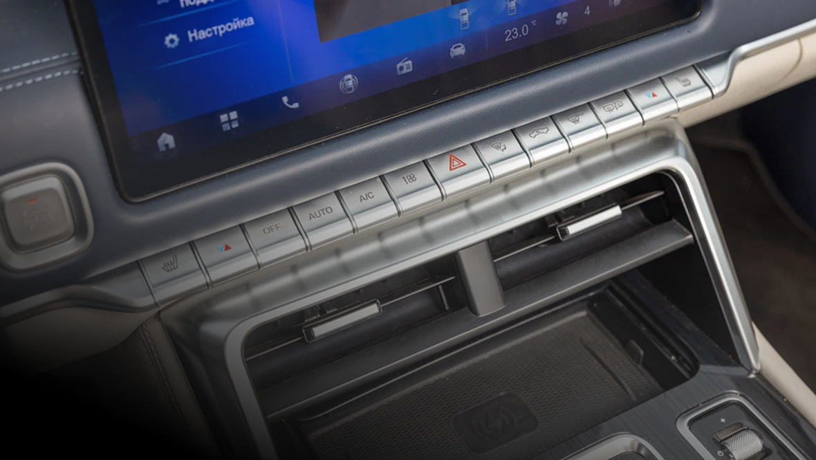 Но чего бы покупатели подобных машин точно не оценили — чрезмерной цифровизации. Главные настройки, конечно же, завязаны на 14,6-дюймовый экран мультимедийного комплекса, но пульт фар привычно находится на подрулевом рычажке, блок настройки зеркал — на двери, удобный рычаг трансмиссии — на центральном тоннеле, а климат-контроль полностью управляется механическими клавишами.