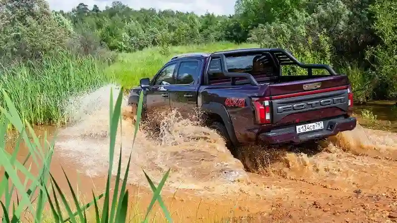 Еще один полноразмерный пикап у Фотона – это V7. Внешне он напоминает Ford F‑150. Но по сути это немного упрощенный FOTON V9. Вместо электрического усилителя в рулевом управлении стоит гидравлический. Как следствие, у V7 отсутствует пакет ассистентов движения. В задней подвеске вместо пружин – более традиционные рессоры. Двигатель и коробка передач аналогичны. Стоит FOTON TUNLAND V7 не сильно дешевле – 5,25 млн рублей.