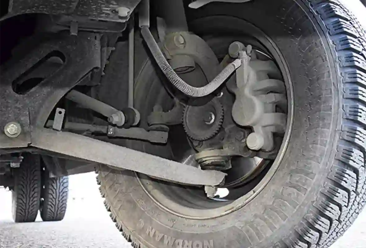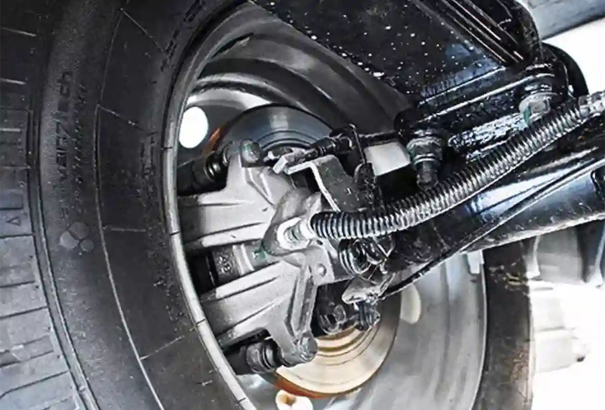 В задней подвеске «трудятся» двухлистовые рессоры. Хорошо виден задний дисковый тормозной механизм